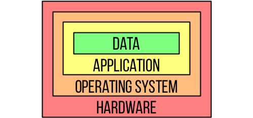 A hardware (iPhone) runs an operating system (iOS11) in which we run an app (Hold The Button) that loads some data (the top score). A change in any of these layers can break something in any and all of the other layers which then needs to be updated.