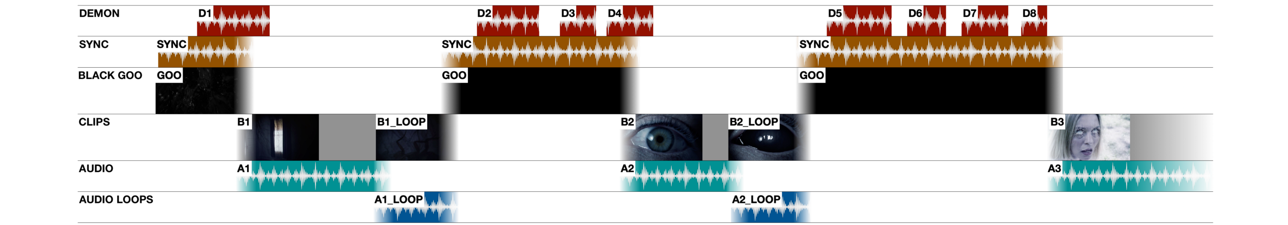 We separated the sync sounds from the demon voice. The timing of the demon phrases was time locked to the sync sound, so if you would run the experience from start to end with your eyes closed the separation would not have made any difference.
