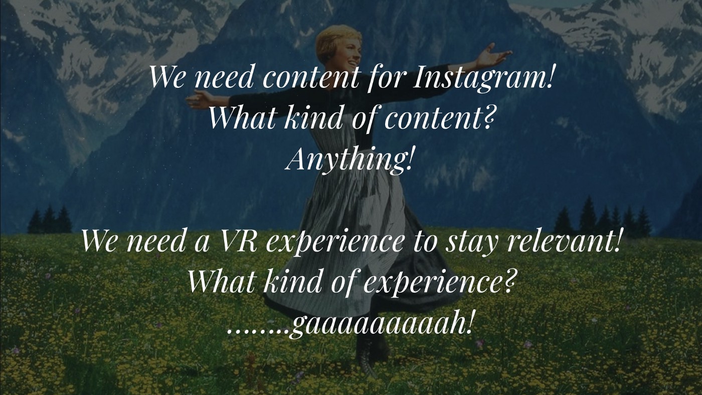 Let’s start with rolling back a bit. You don’t HAVE to have a VR experience, or an Instagram feed to be relevant. Maybe you should, maybe you shouldn’t. Users are more conservative than the tech enthusiasts think, even the KIDS! Being at the cutting edge doesn’t guarantee engagement.
